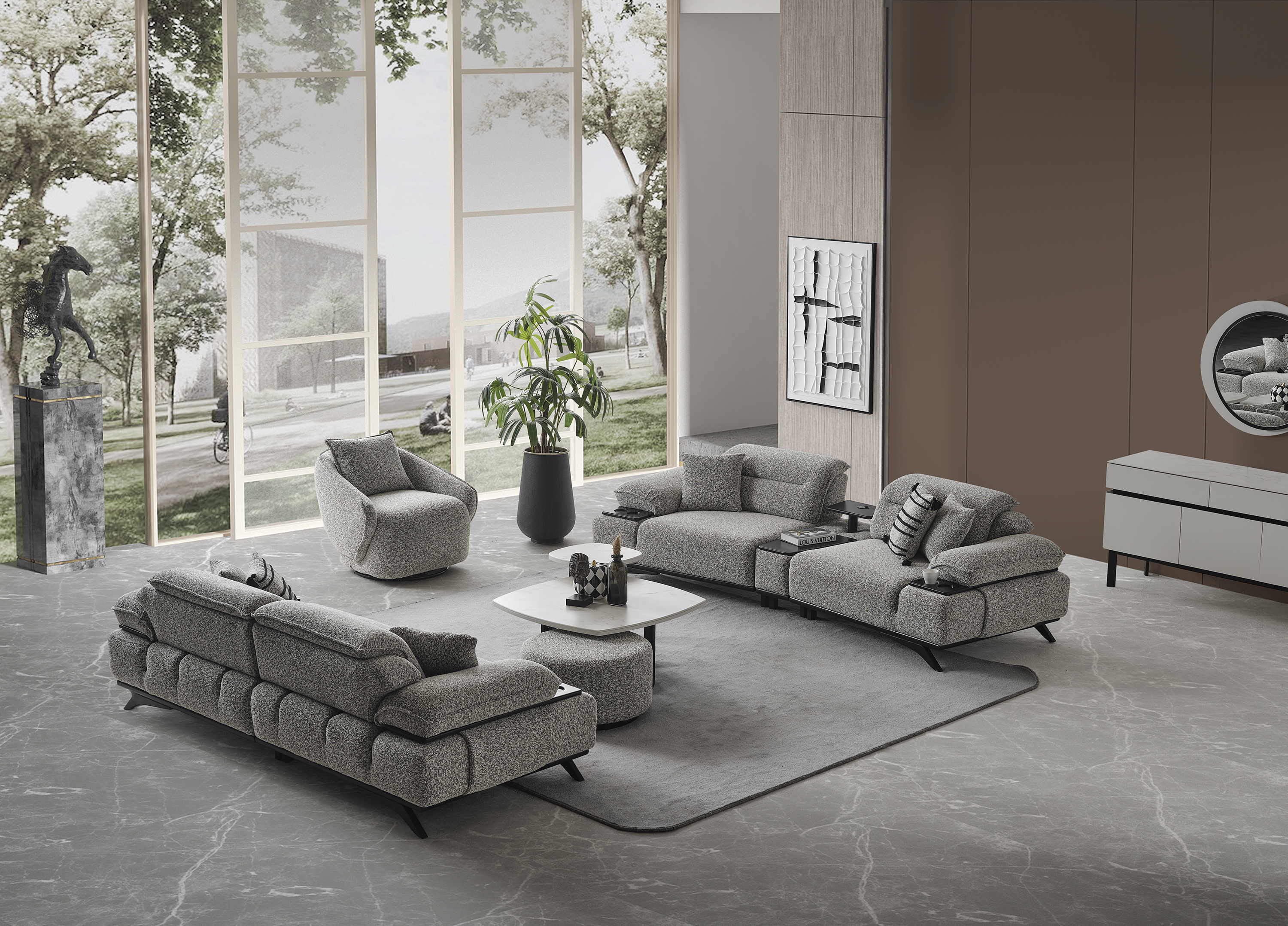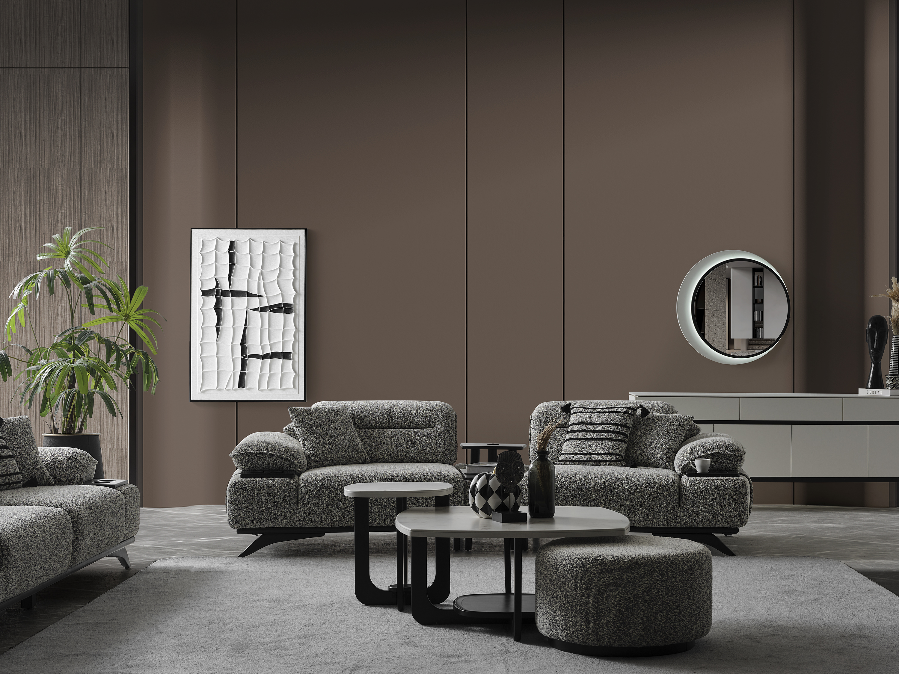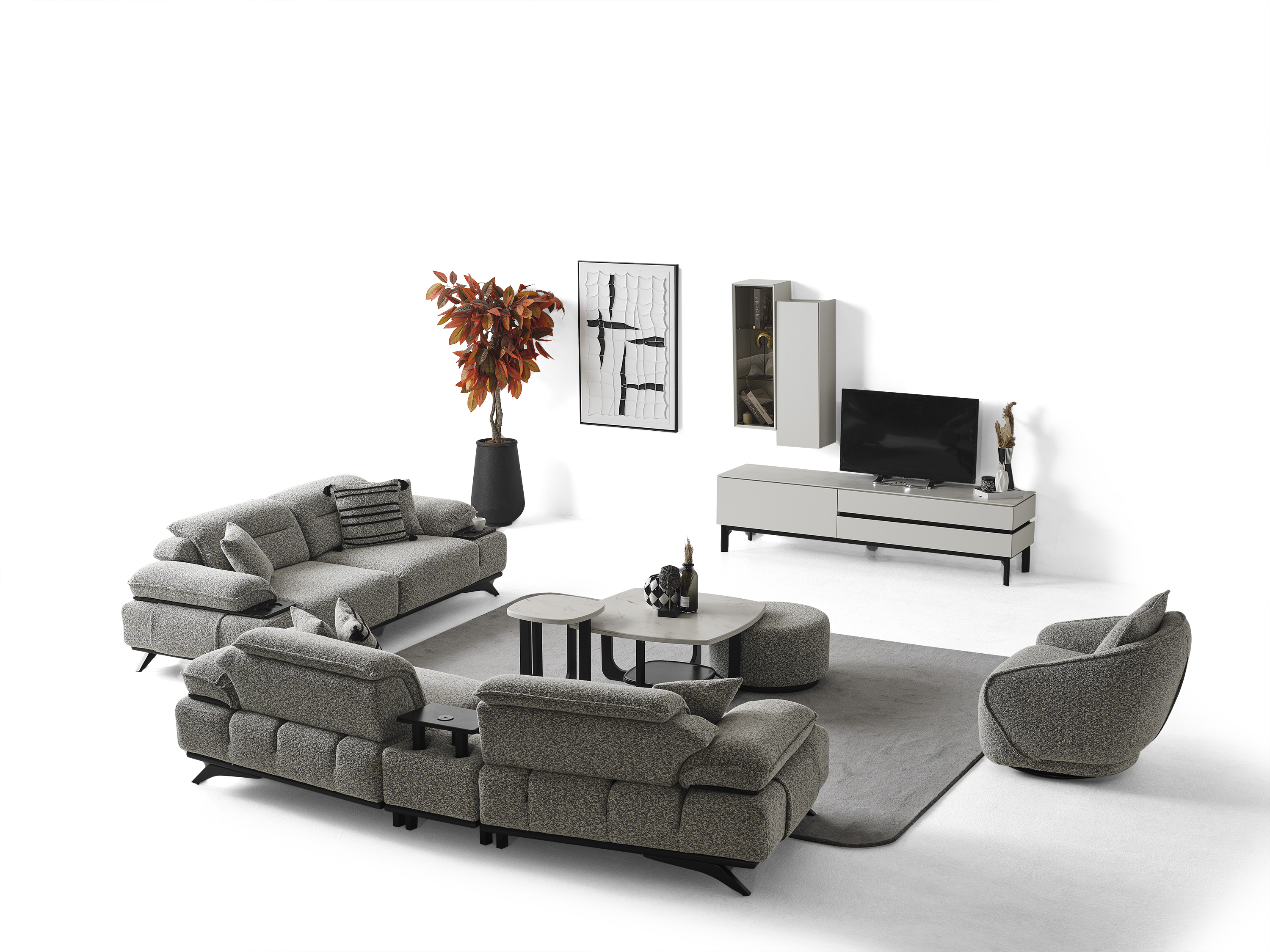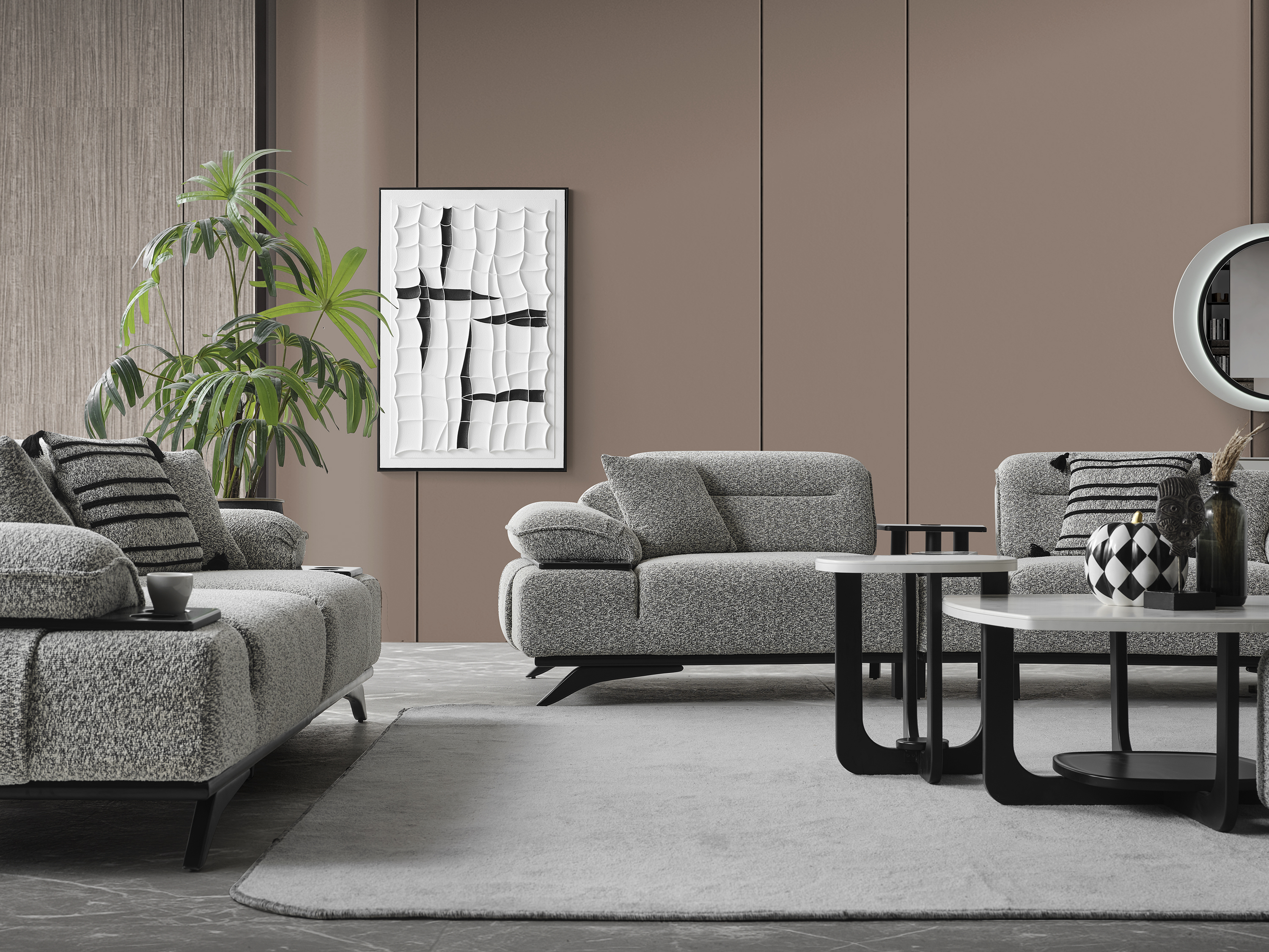 Ashley Koltuk Takımı, yüksek konfor standartlarını kaliteli malzemelerle bir araya getiren özel bir tasarıma sahiptir. Estetik görünümü ve ergonomik yapısı sayesinde yaşam alanlarınıza şıklık ve rahatlık katmak için ideal bir seçimdir. Takım; 3’lü koltuk ve berjer seçenekleriyle sunulmaktadır. Modern çizgileri, yumuşak oturum yapısı ve dayanıklı kumaş dokusu sayesinde hem uzun ömürlü hem de konforlu bir kullanım sağlar. Ayrıca, mekânınıza tam uyum sağlayacak ve uygun farklı renk ve kumaş seçenekleri için bizimle iletişime geçebilirsiniz. Müşteri ihtiyaçlarına göre tamamen kişiselleştirilebilir yapısıyla hayalinizdeki oturma grubunu oluşturabilirsiniz.
