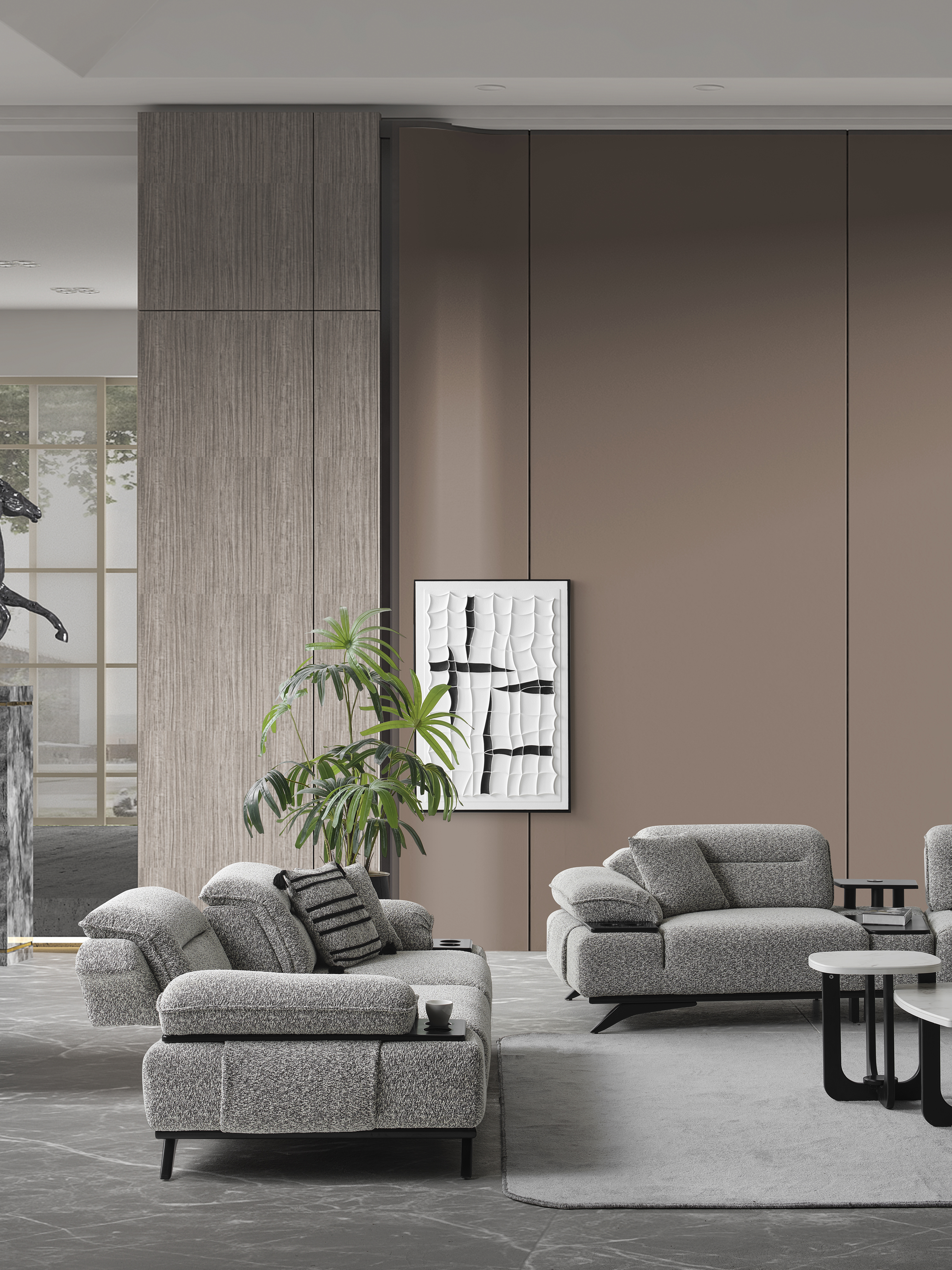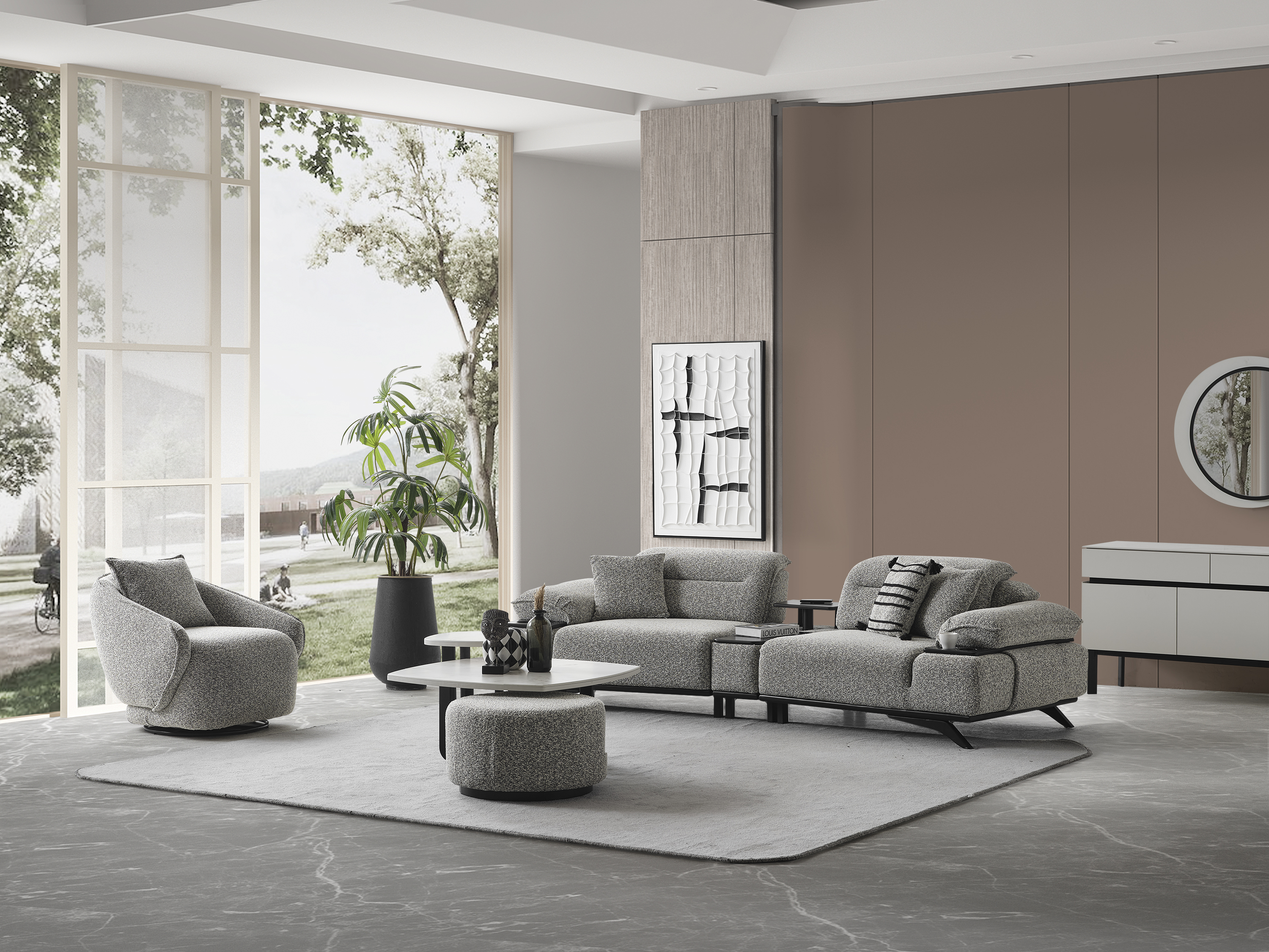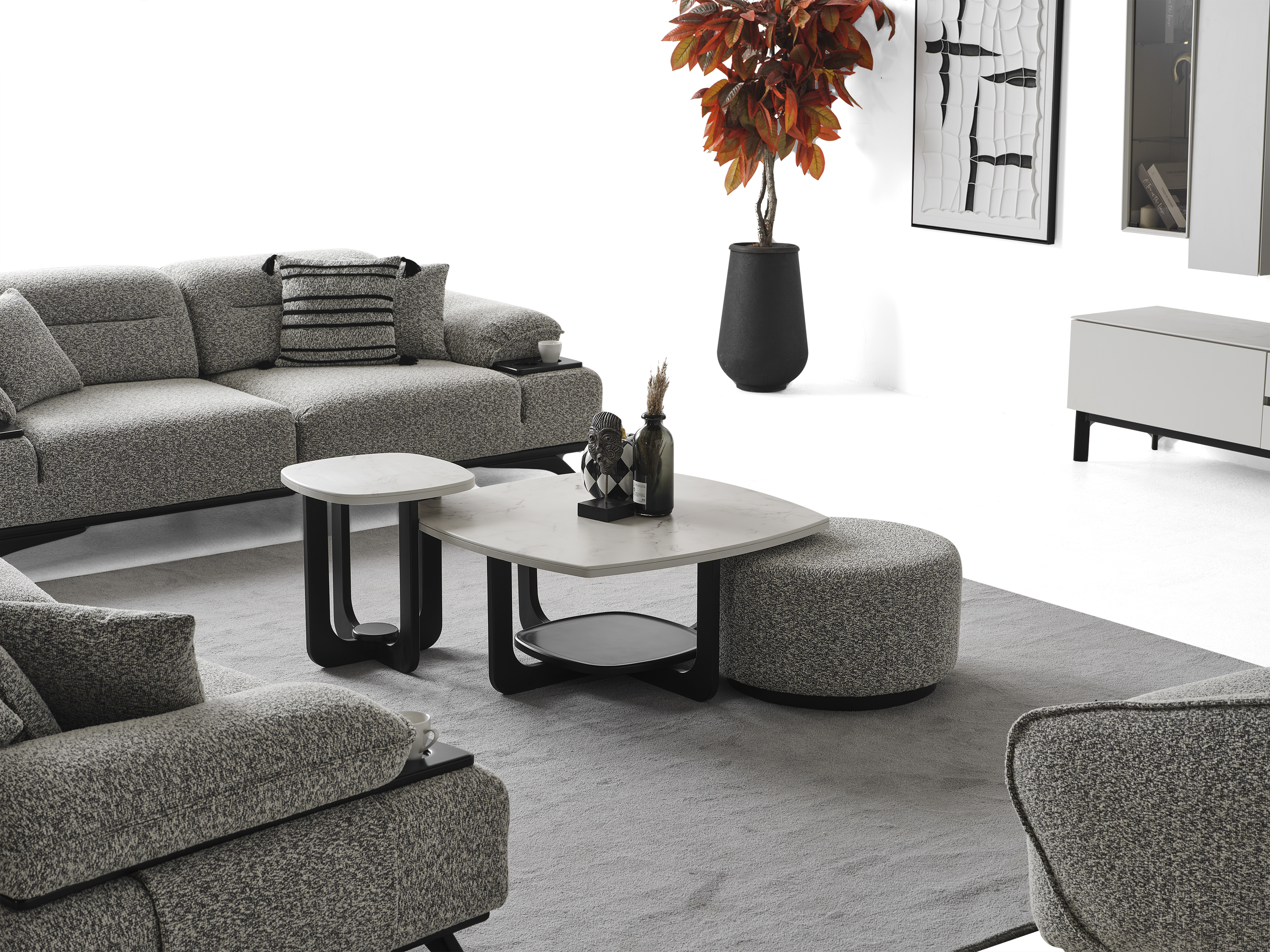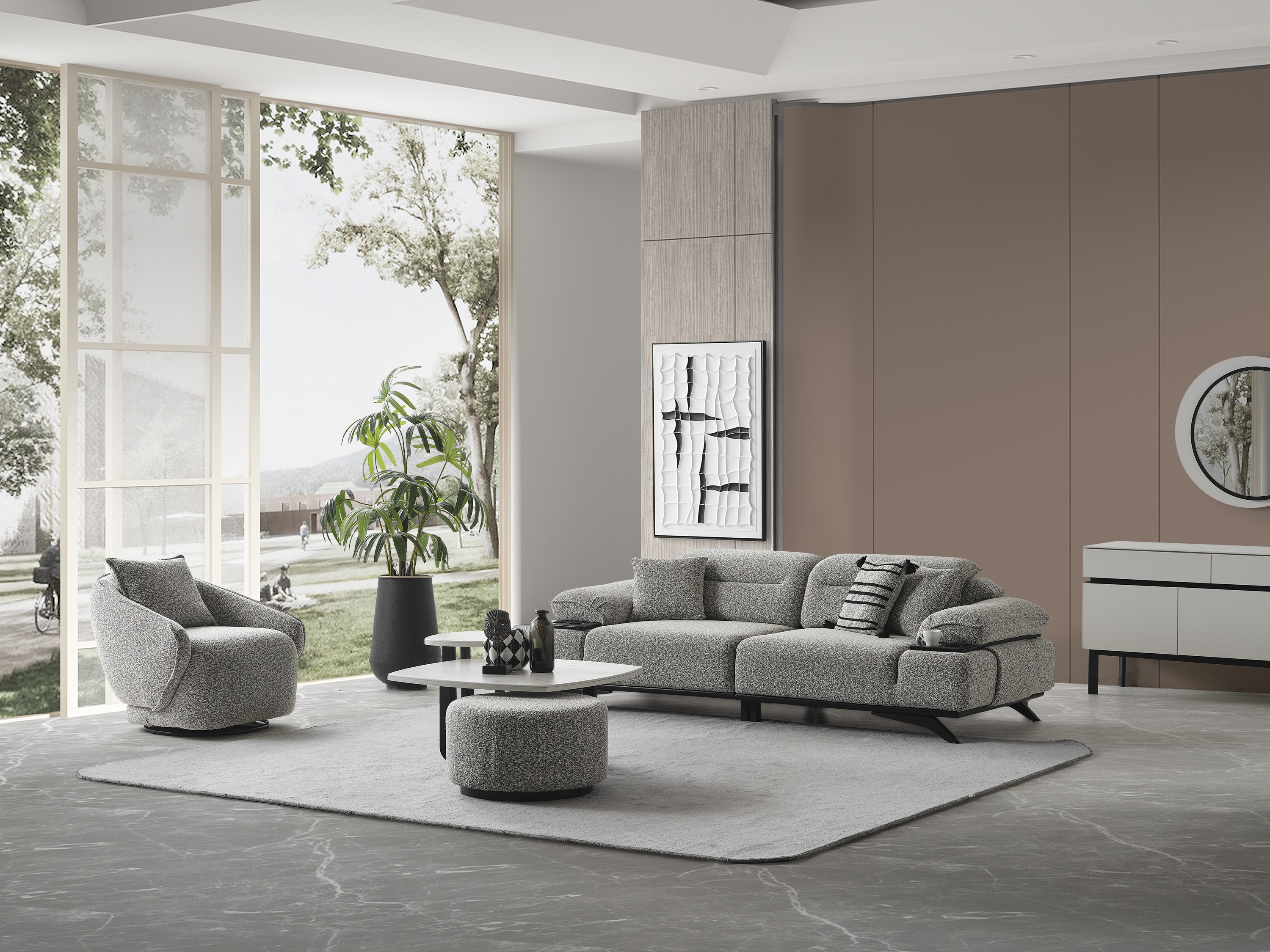 Ashley Koltuk Takımı, yüksek konfor standartlarını kaliteli malzemelerle bir araya getiren özel bir tasarıma sahiptir. Estetik görünümü ve ergonomik yapısı sayesinde yaşam alanlarınıza şıklık ve rahatlık katmak için ideal bir seçimdir. Takım; 3’lü koltuk ve berjer seçenekleriyle sunulmaktadır. Modern çizgileri, yumuşak oturum yapısı ve dayanıklı kumaş dokusu sayesinde hem uzun ömürlü hem de konforlu bir kullanım sağlar. Ayrıca, mekânınıza tam uyum sağlayacak ve uygun farklı renk ve kumaş seçenekleri için bizimle iletişime geçebilirsiniz. Müşteri ihtiyaçlarına göre tamamen kişiselleştirilebilir yapısıyla hayalinizdeki oturma grubunu oluşturabilirsiniz.